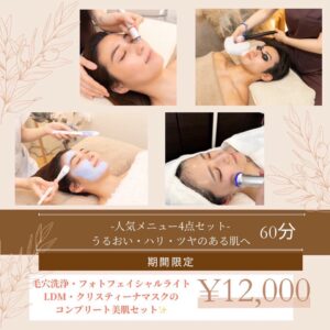 ①毛穴洗浄+IPLフォト+クリスティーナパック+LDM 12000円 75分